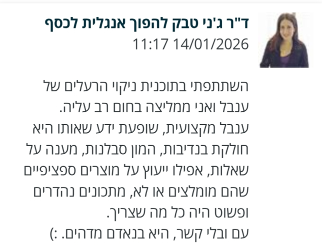 תודה רבה על הנועם ועל ההכוונה המקצועית.