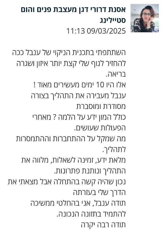 ענבל המהממת שעברתי אצלה שינוי מטורף בעקבות בעיה רפואית שחוויתי